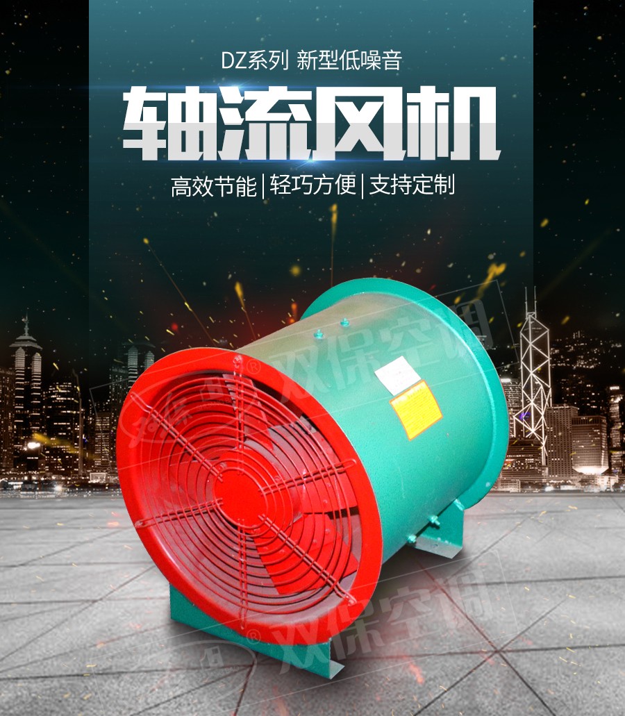 江蘇雙保空調有限公司—DZ系列低噪聲軸流風機是一種新型軸流風機。具有效率高、噪聲低、運轉平穩、安裝方便等特點。葉片可根據需要用鋁合金、ABS工程塑料、FRP玻璃鋼等材料制作。 本系列產品廣泛適用于工礦企業、民用建筑的壁式排風、崗位送風、管道通風、屋頂送排風。